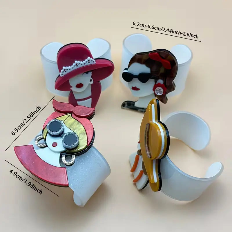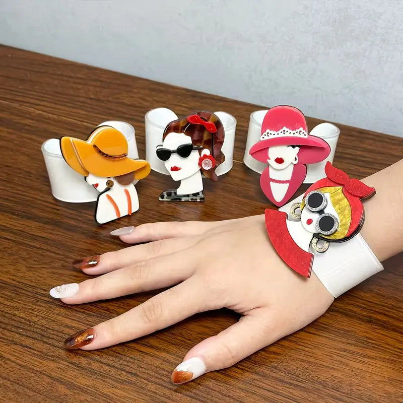 1pc Creative Fashion Luxury Modern Hat and Headscarf Pattern Open Bracelet