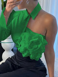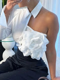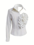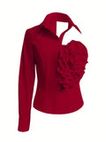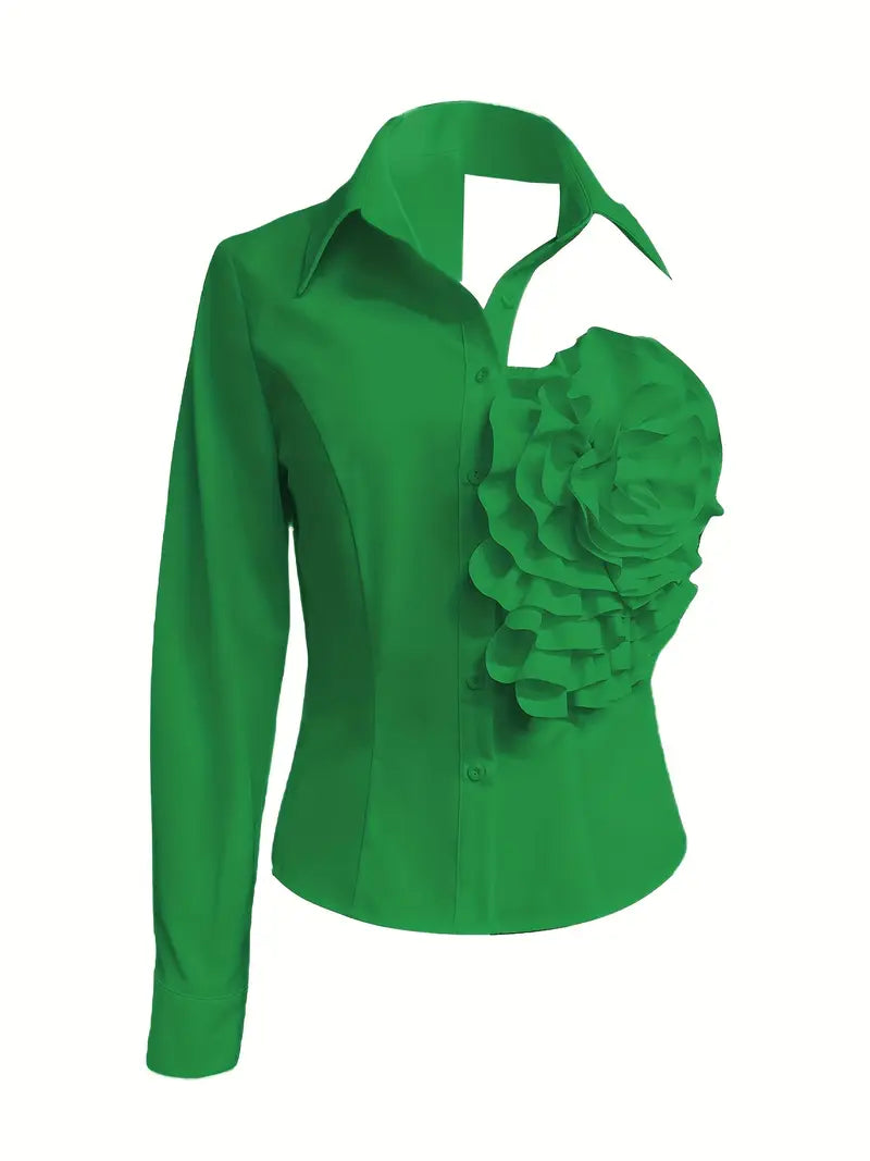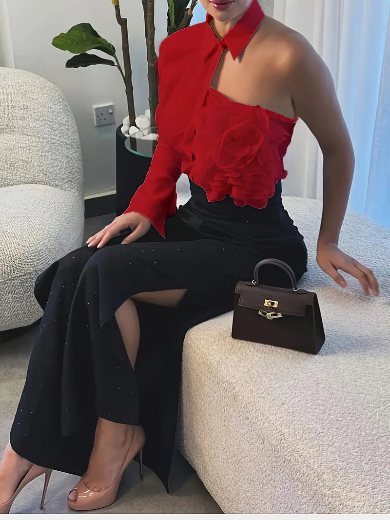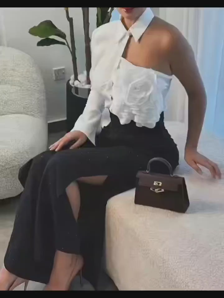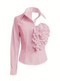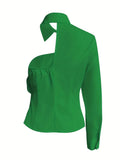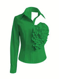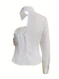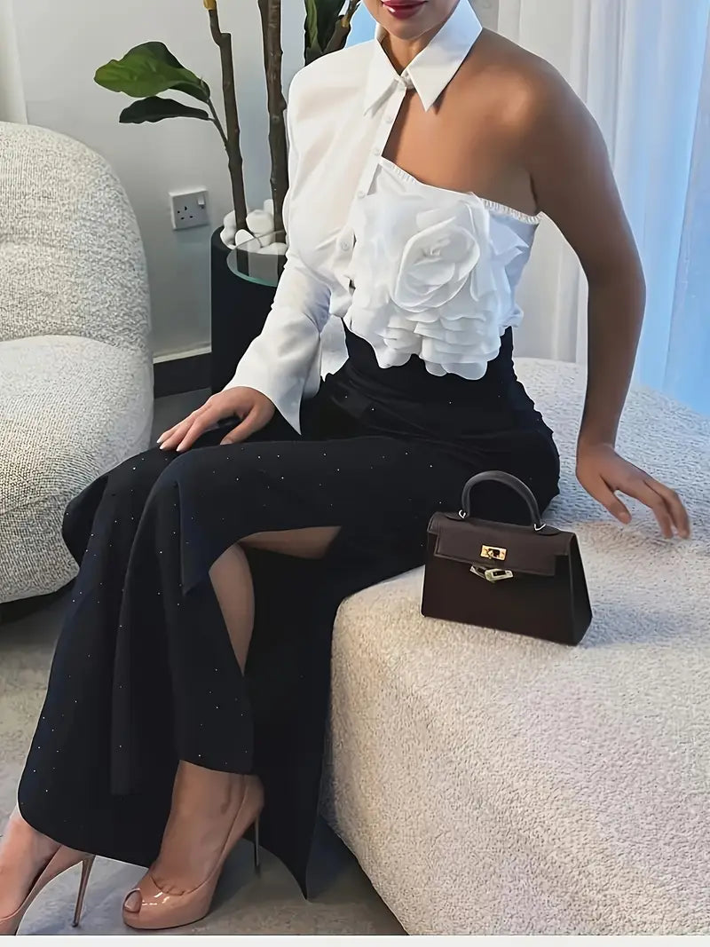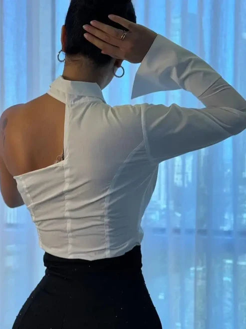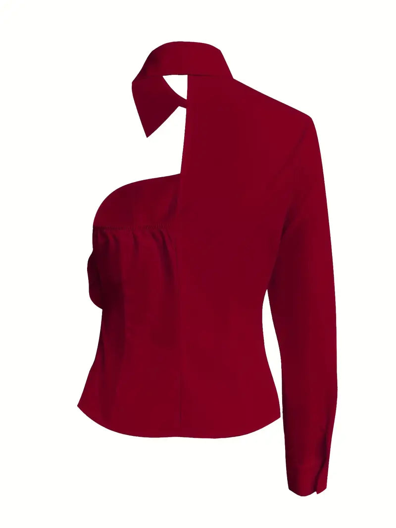 Elegant Women's Top Shirt with Ruffled Neckline Offshoulder Styling