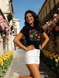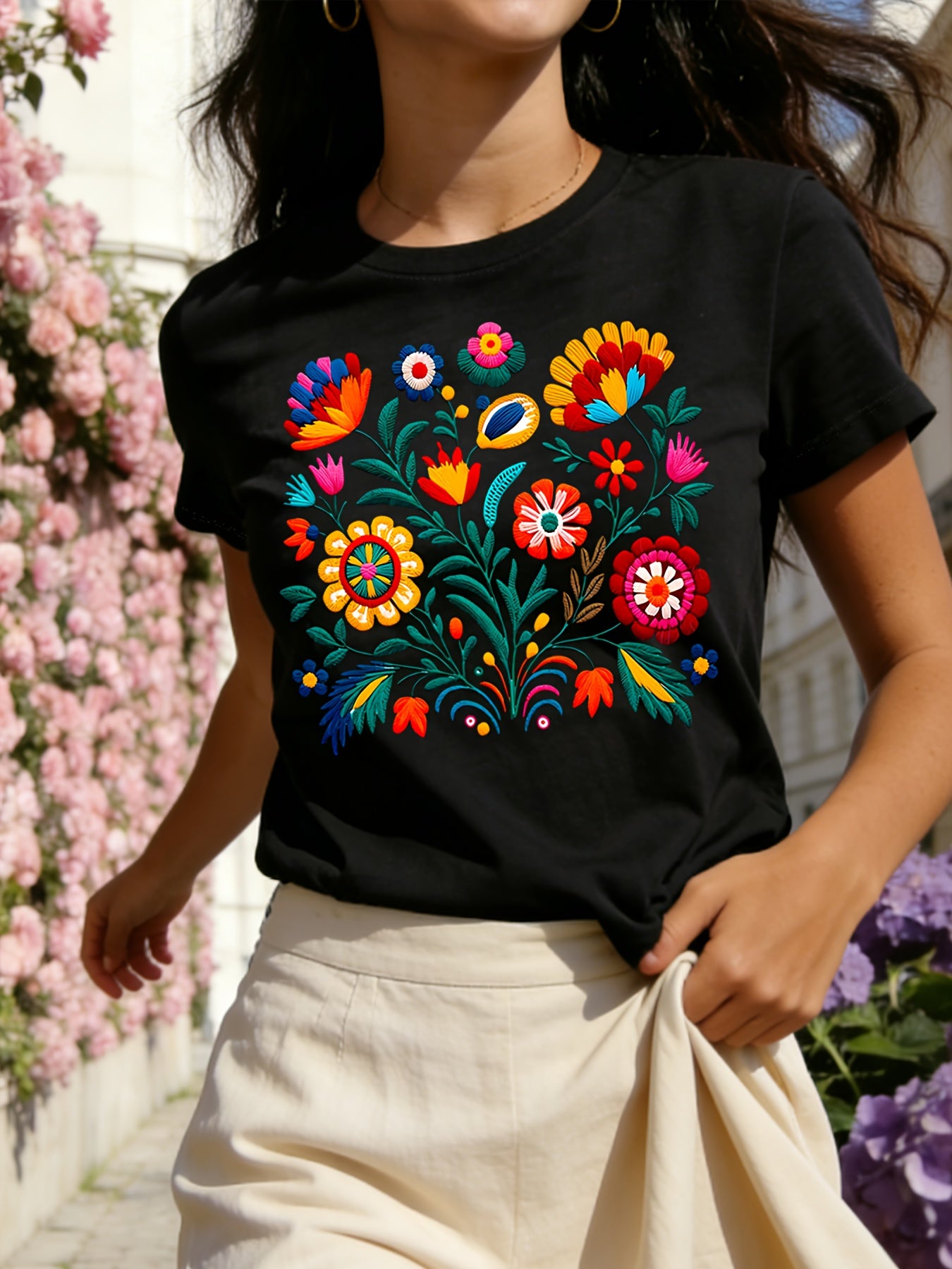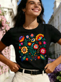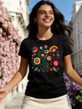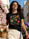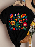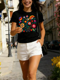 Floral Color Letter Print T-shirt,