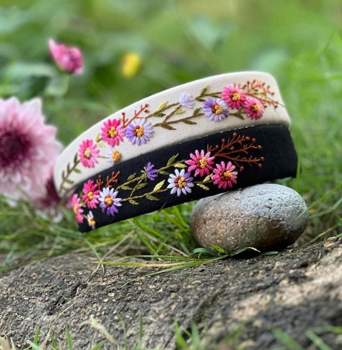 Floral Embroidered Headband, Linen Hair Accessories, Cute Embroidery