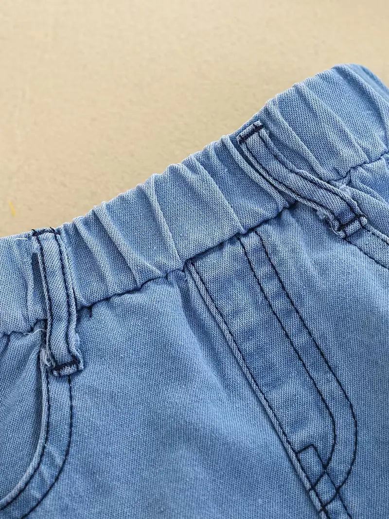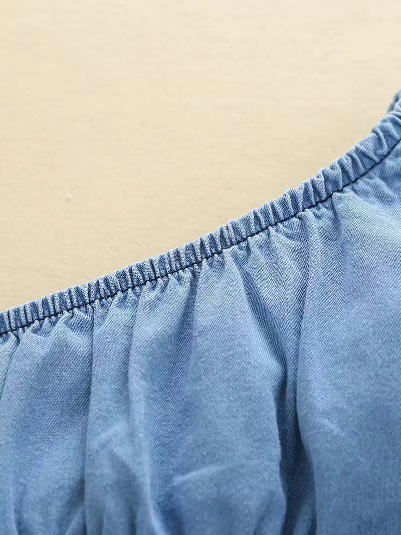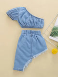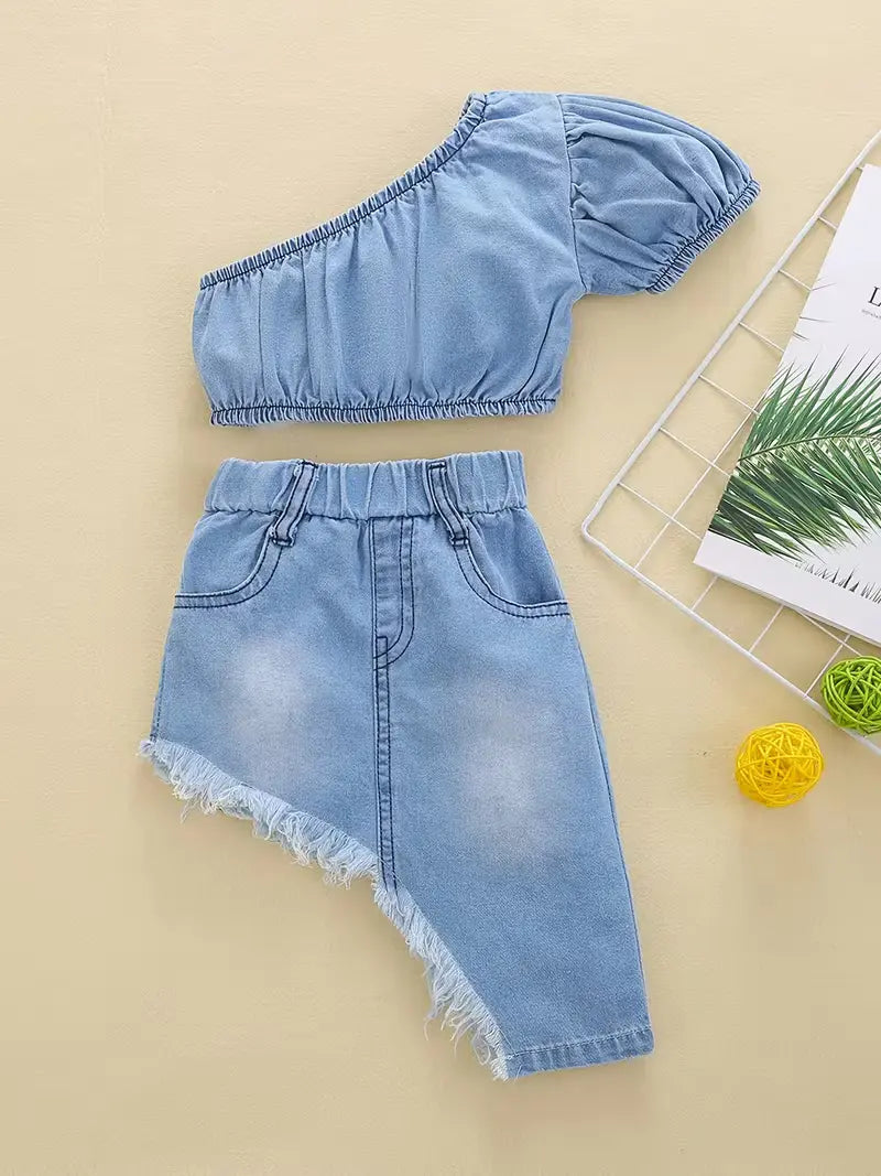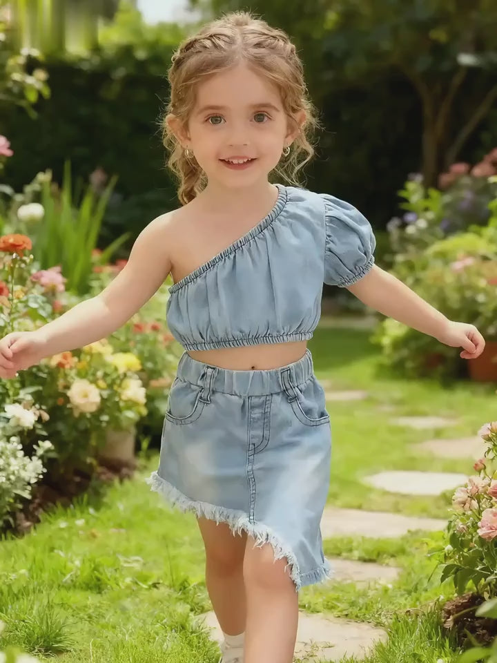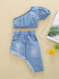 Girls' Off-Shoulder Denim Tunic and Skirt Set,