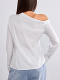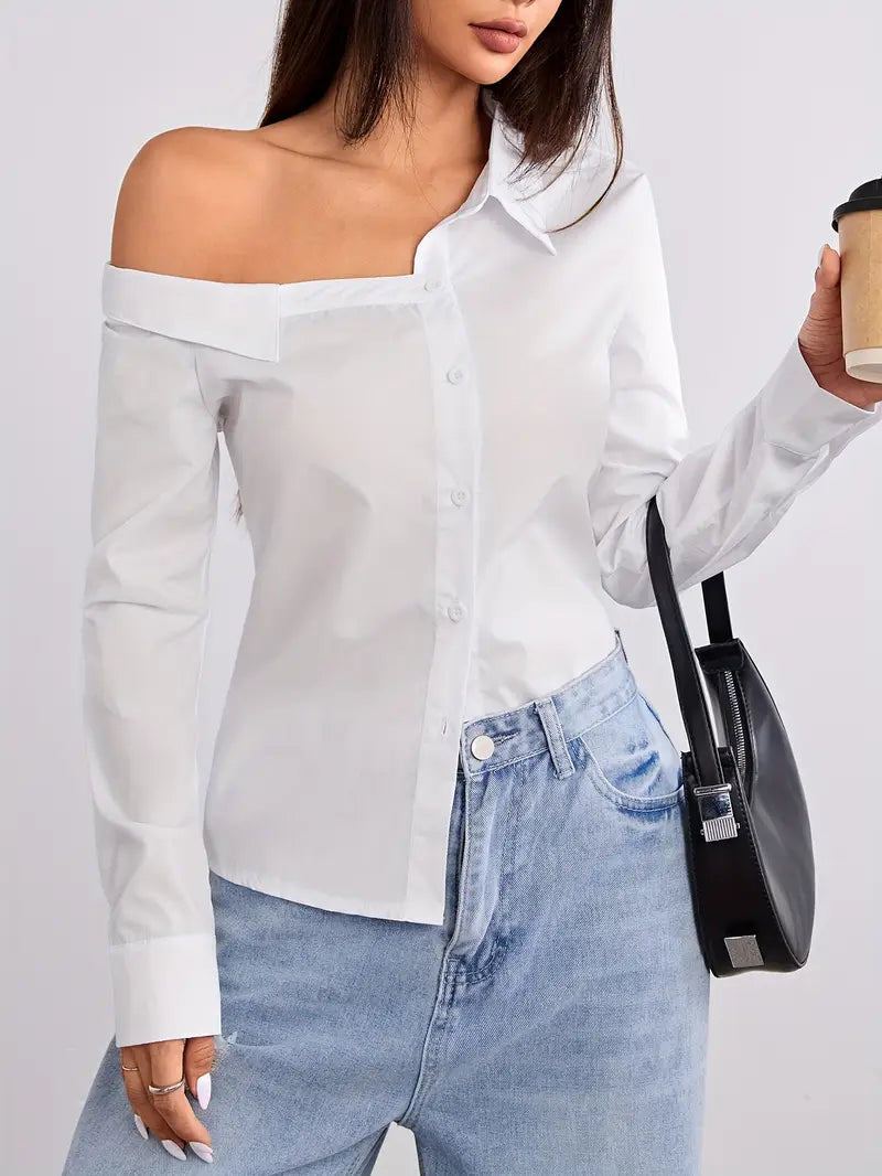 Stylish One-Shoulder Long Sleeve Blouse - Chic Solid Color, Button Front,