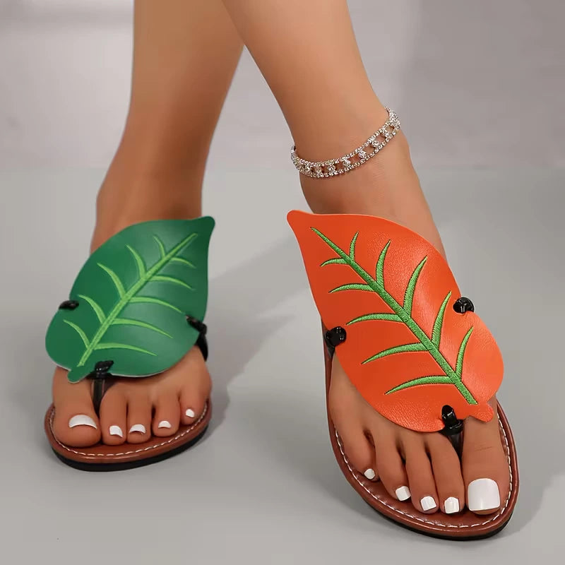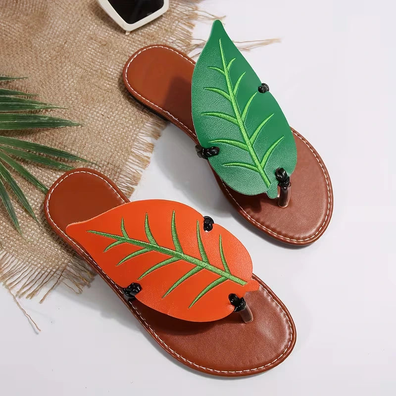 Summer Fashion Simple Elegant Versatile Women'S Flat Embroidered Leaf