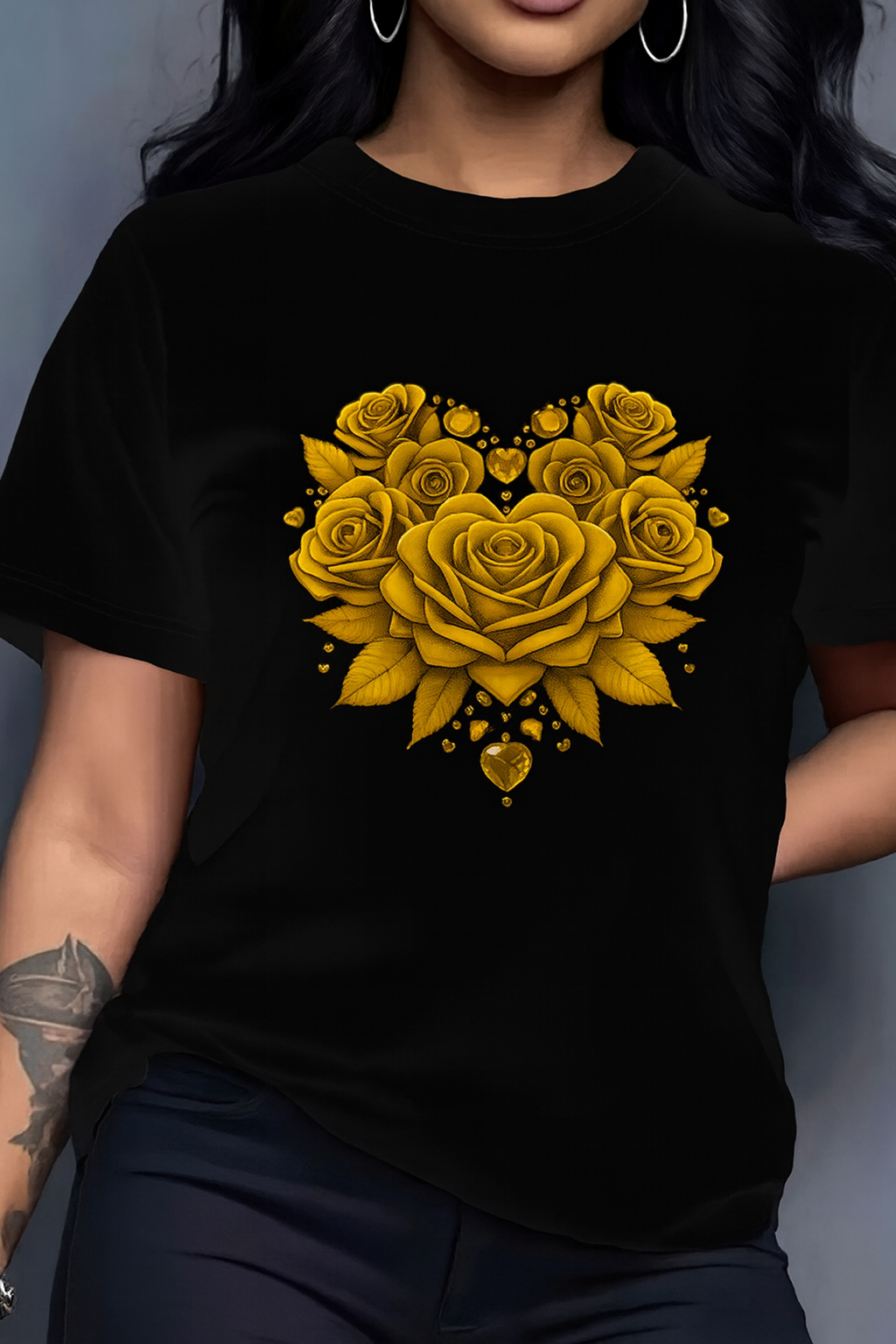 Women'S Floral Rose Heart Print T-Shirt